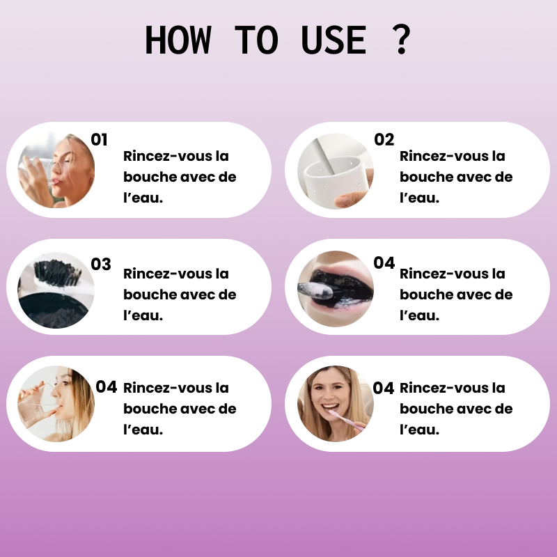 Apply a thin layer of gel on clean, dry teeth, let it sit for 1–2 minutes, then rinse lightly. Use once or twice daily for visible results within the first week.
