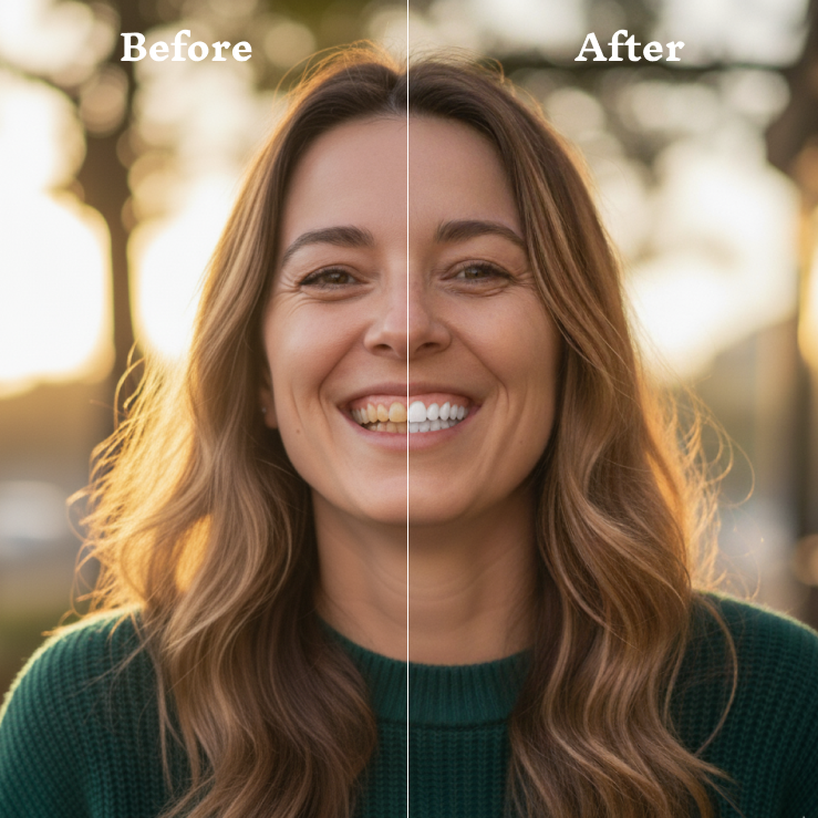Purple sits opposite yellow on the color wheel, meaning it naturally cancels out yellow hues. Our water-soluble purple gel creates an instant whitening effect, revealing a brighter, cleaner-looking smile without harsh chemicals or peroxide.